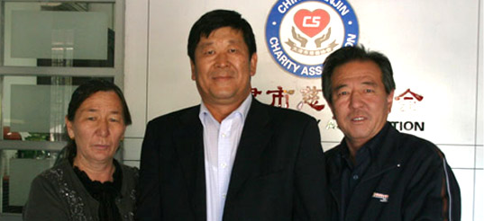 2009星空在线(中国)集团董事长崔洪金为阿依努尔捐款10万元,阿依努尔的母亲、舅舅与董事长崔洪金合影